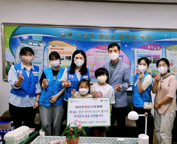 햇살마루에서는 7월 1일(금) 부터 이틀간의 일정으로 경남 창녕군을 방문하여 활동을 하였으며 1일차에는 계창초등학교(학교장 김형태)를 방문하여 어린 학생들의 학습을 도와주고 함께하는 친구가 되어줄 AI기반의 네이버 램프 전달식을 가졌습니다. 학생 수가 줄어든 전형적인 농촌 초등학교(전교생 27명)로 유치원 어린이들이 함께 공부하는 아름다운 학교였습니다.