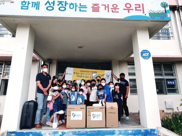 햇살마루는 도서지역인 전라북도 부안군 위도면 위도초등학교(초등학생 18명, 유치원 5명)를 방문하여 AI친구 클로바 램프 전달식(램프 6개, 2백만원 상당)을 위도초등학교에서 진행했습니다.